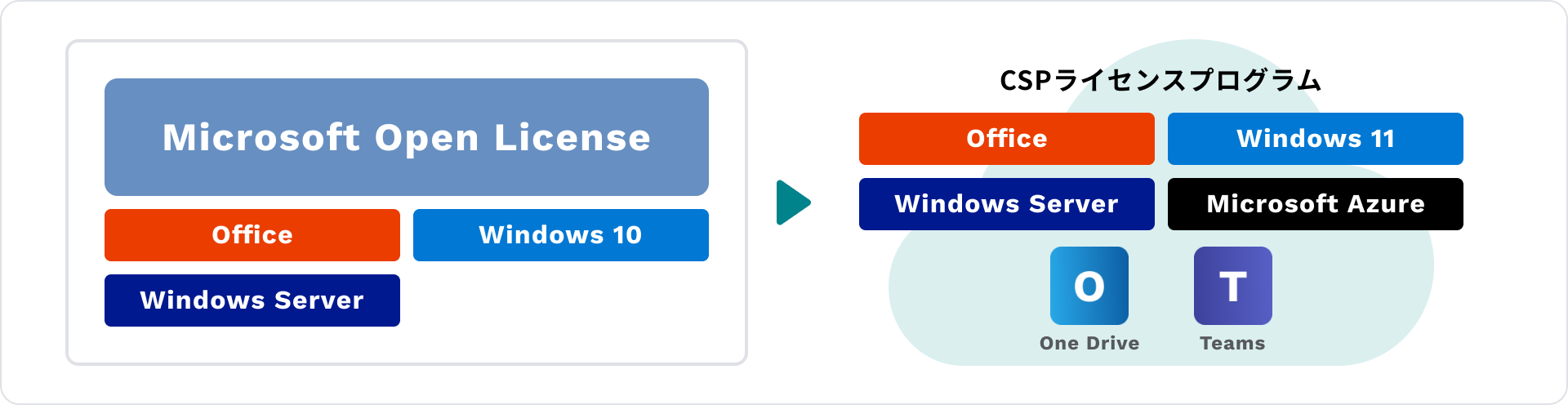 従来Open Business等買い取り型だったオンプレミスのサーバー/クライアント製品の永続ライセンスをMicrosoft 365やAzureなどを提供しているCSPライセンスプログラムでご提供します。