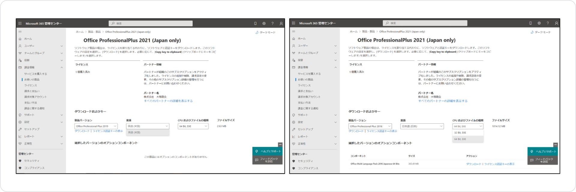 - 2019以降はOffice展開ツールでのインストールとなっているため技術的知識が必要です。インストールに不安があるお客様は弊社営業・エンジニアまでご相談ください。